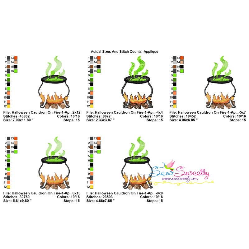 Halloween Cauldron On Fire-1 Exclusive Applique Embroidery Design Pattern For Halloween Embroidery Projects.
