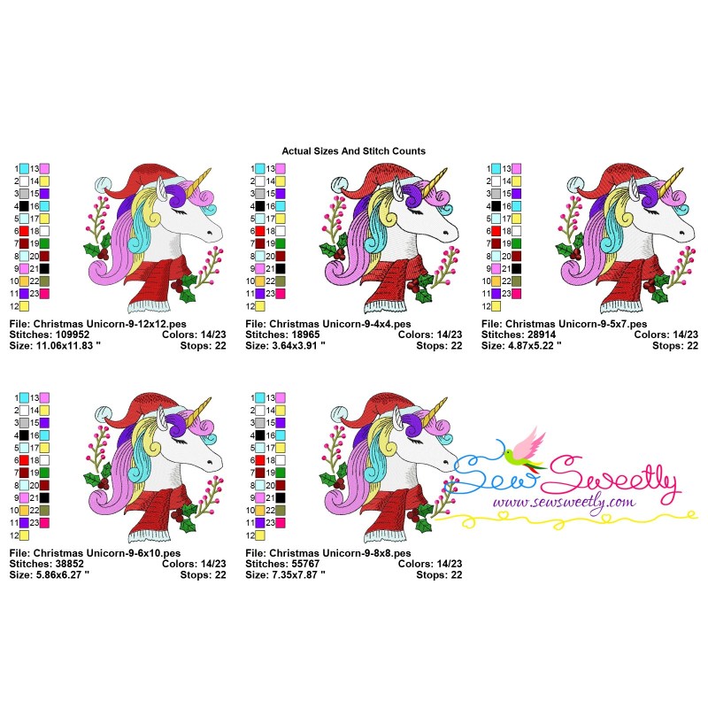 Christmas Unicorn-9 Exclusive Machine Embroidery Design Pattern For Christmas Embroidery Projects.