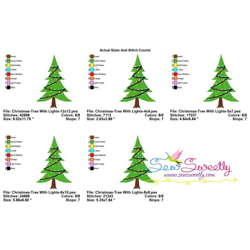 Christmas Tree With Lights Machine Embroidery Design Pattern For Christmas Embroidery Projects.