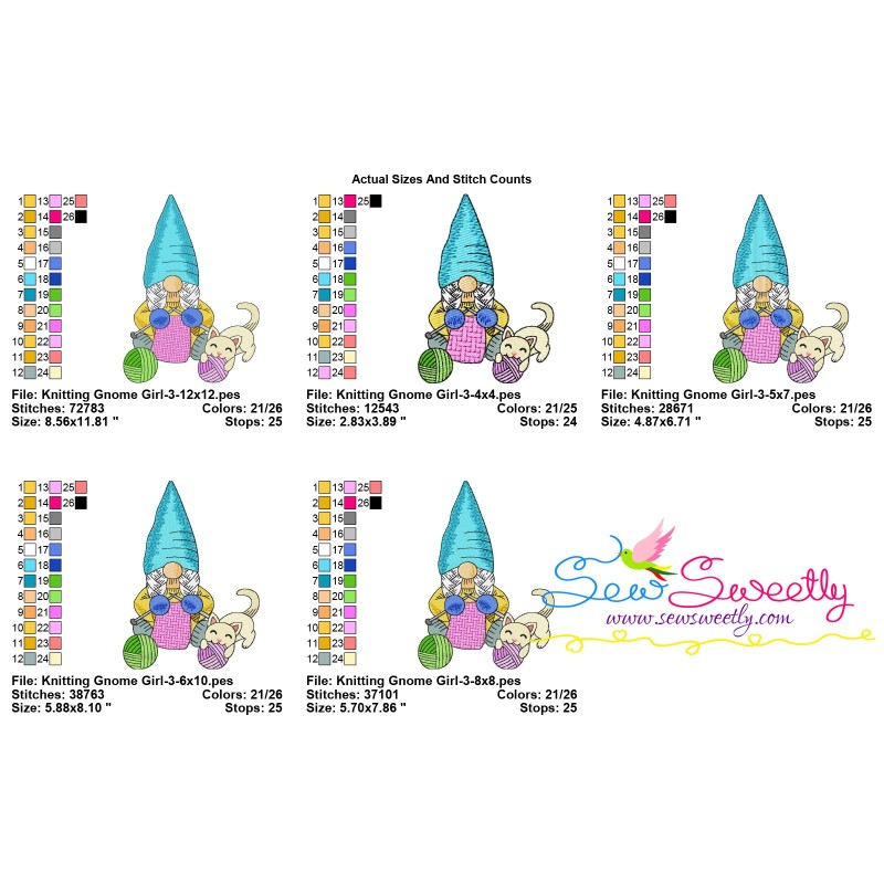 This Embroidery Design Set Includes 10 beautiful Knitting Gnomes Embroidery Designs.