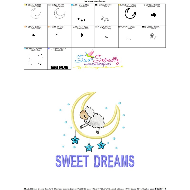 Sweet Dreams Sheep Lettering Exclusive Applique Embroidery Design Pattern For Pillows And Cushions Embroidery Projects.