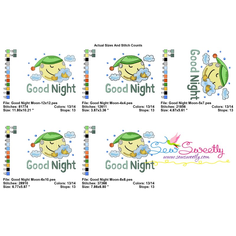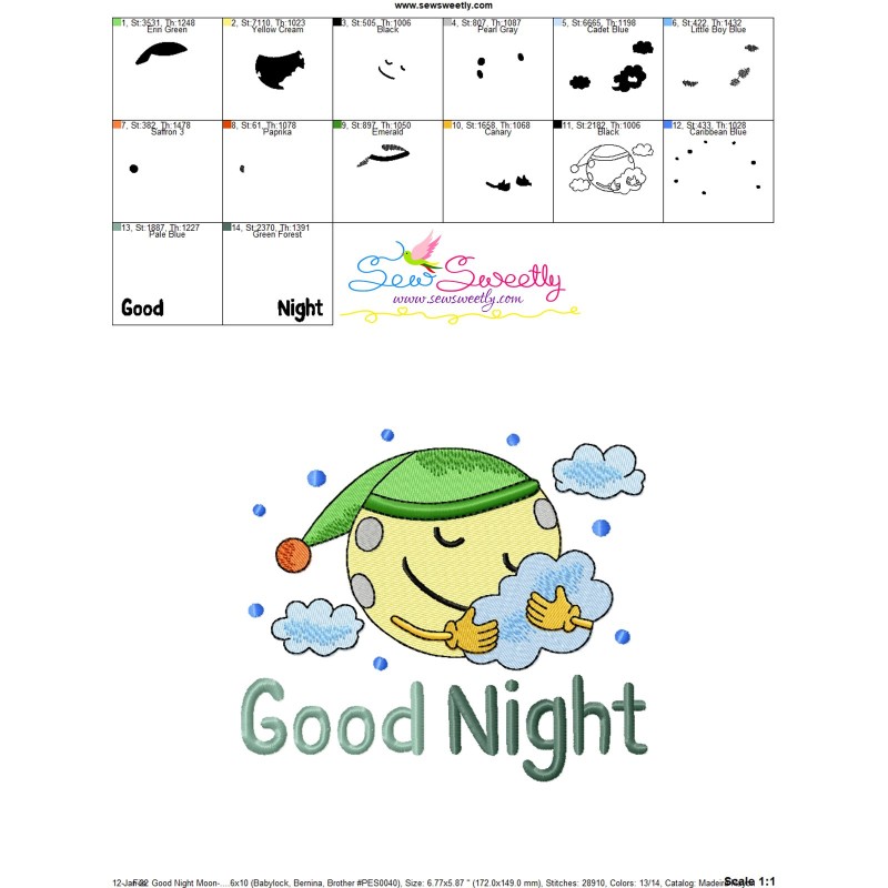 Good Night Moon With Clouds Lettering Embroidery Design Pattern-1