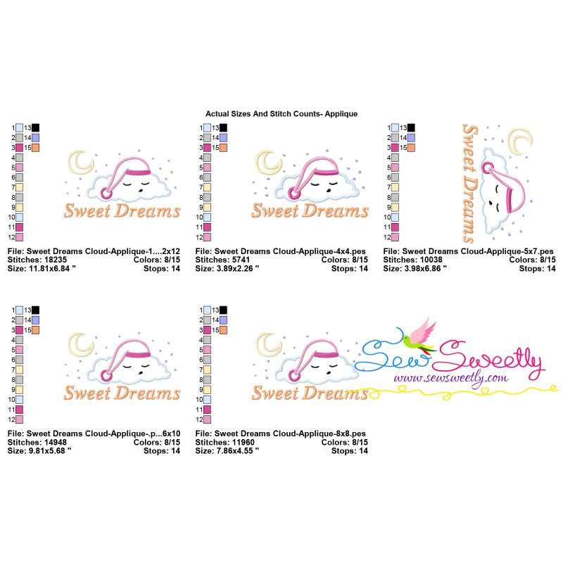 Sweet Dreams Cloud Lettering Exclusive Applique Embroidery Design Pattern For Pillows And Cushions Embroidery Projects.
