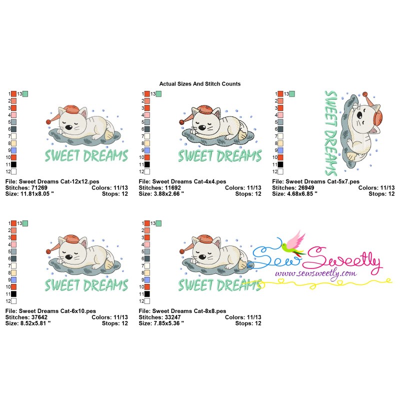 Sweet Dreams Cat Lettering Exclusive Machine Embroidery Design Pattern For Pillows And Cushions Embroidery Projects.