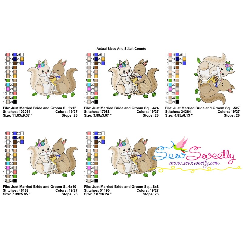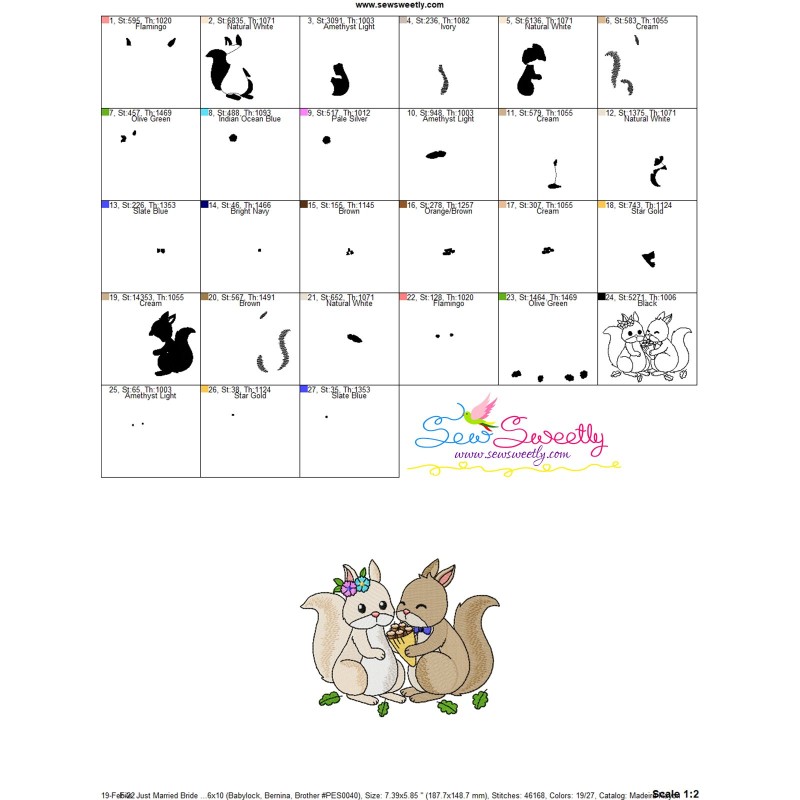 Just Married Bride and Groom Squirrels Valentine Embroidery Design Pattern