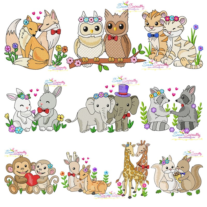 This Embroidery Design Set Includes 10 Beautiful Valentine Animals Machine Embroidery Designs For Valentine's Day.