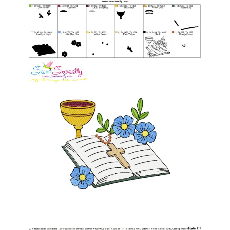 Chalice With Bible Floral Religious Embroidery Design Pattern-3