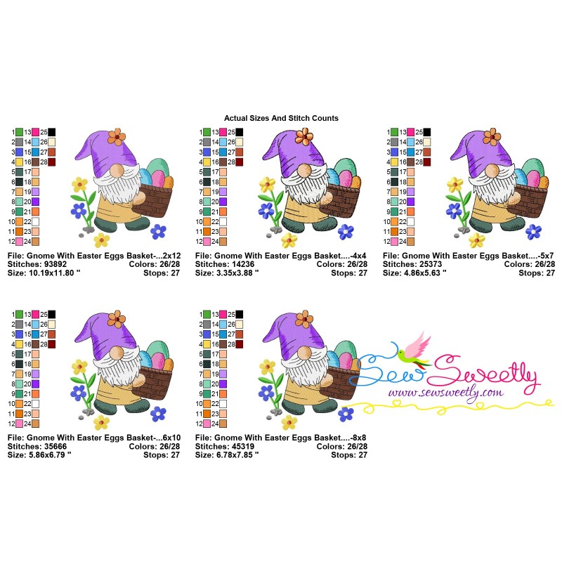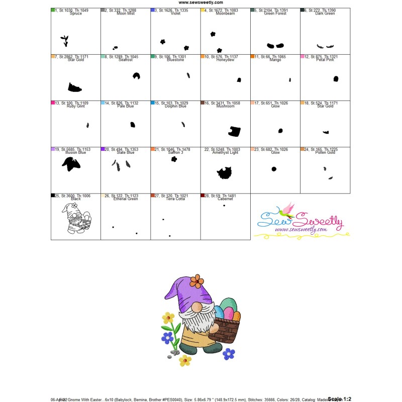 Gnome With Easter Eggs Basket Exclusive Machine Embroidery Design Pattern For Easter Machine Embroidery Projects.