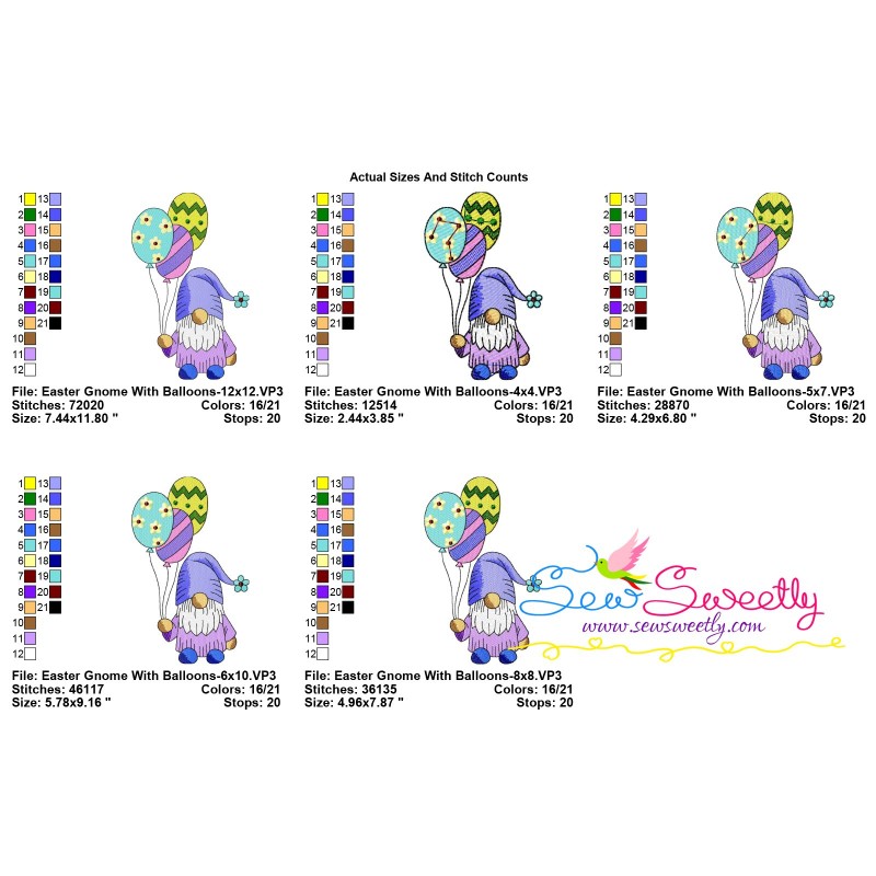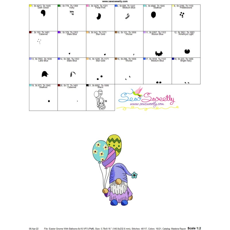 Easter Gnome With Balloons Exclusive Machine Embroidery Design Pattern For Easter Machine Embroidery Projects.