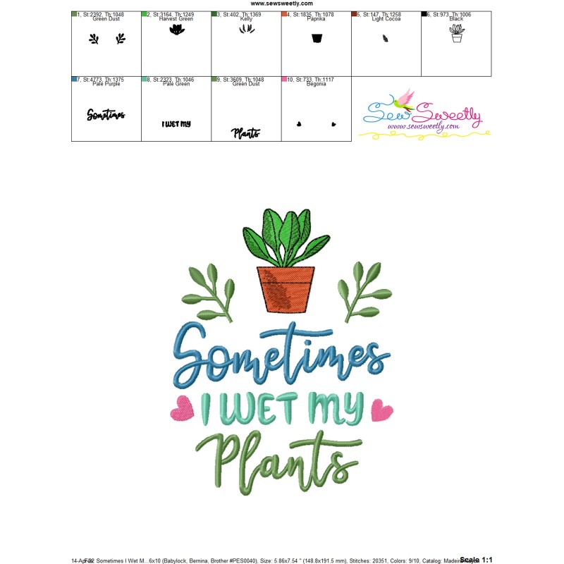 Sometimes I Wet My Plants Gardening Embroidery Design Pattern