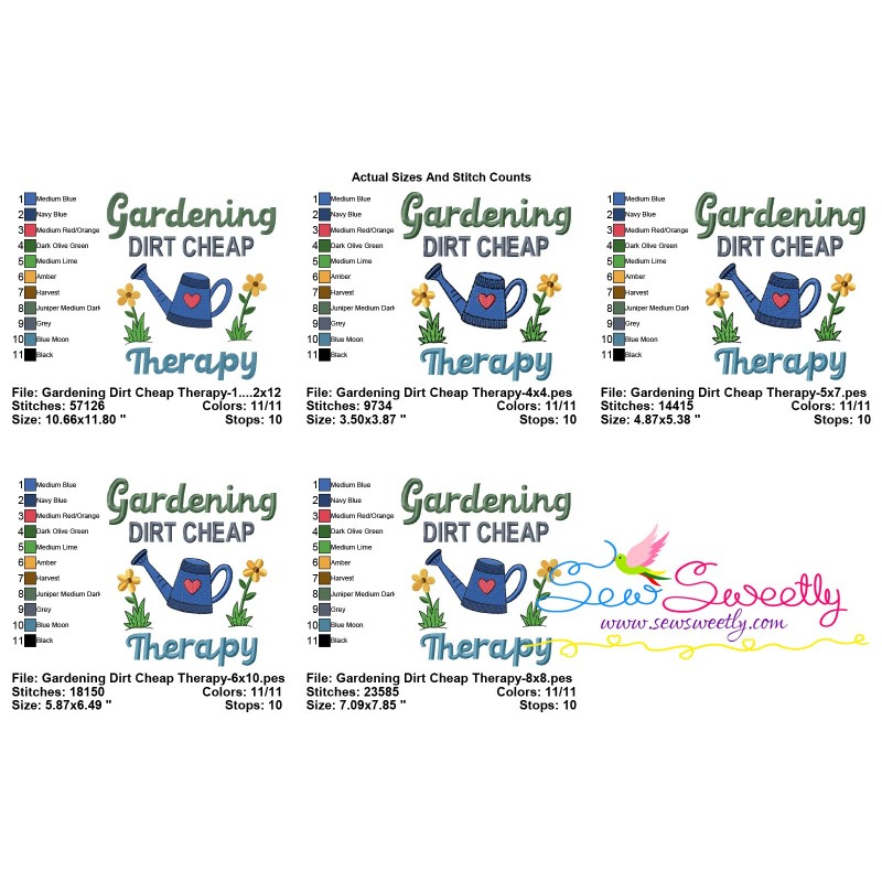 Gardening Dirt Cheap Therapy Lettering Exclusive Machine Embroidery Design Pattern For Gardening Embroidery Projects.
