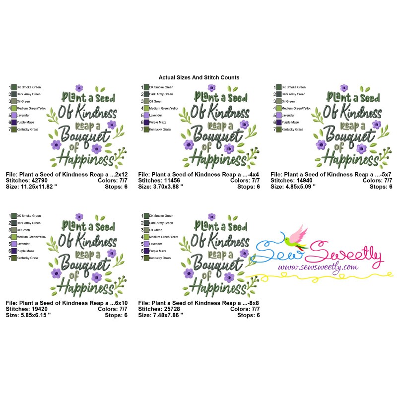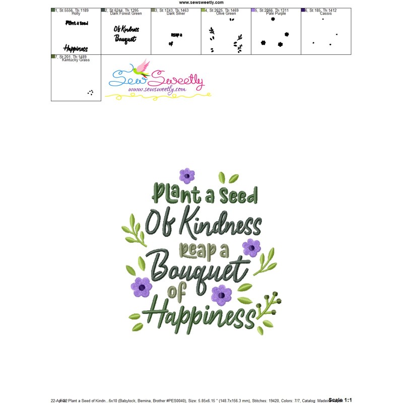 Plant a Seed of Kindness Reap a Bouquet of Happiness Embroidery Design Pattern