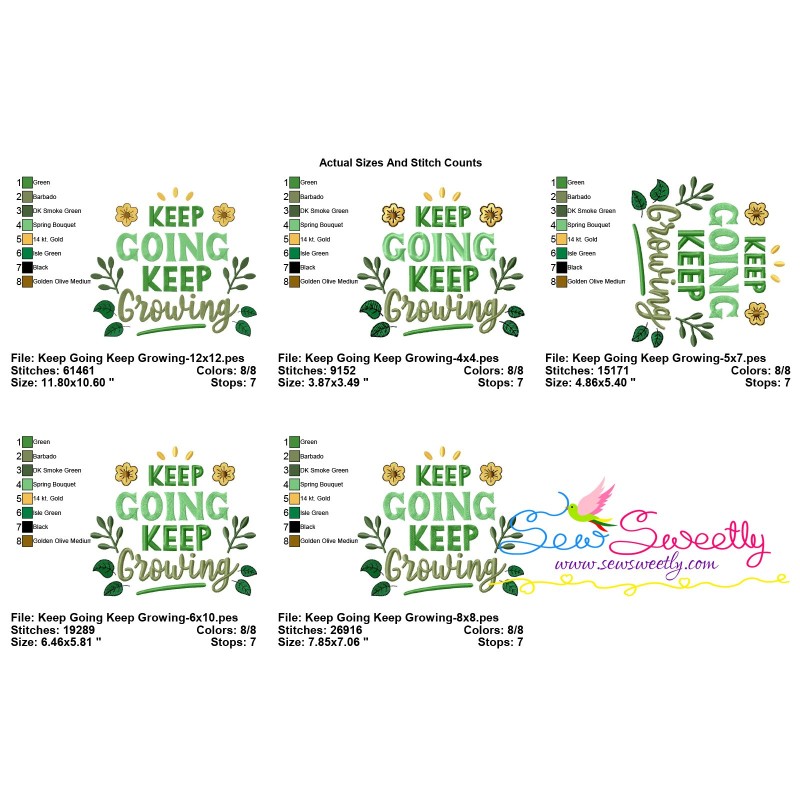 Keep Going Keep Growing Lettering Exclusive Machine Embroidery Design Pattern For Gardening Embroidery Projects.