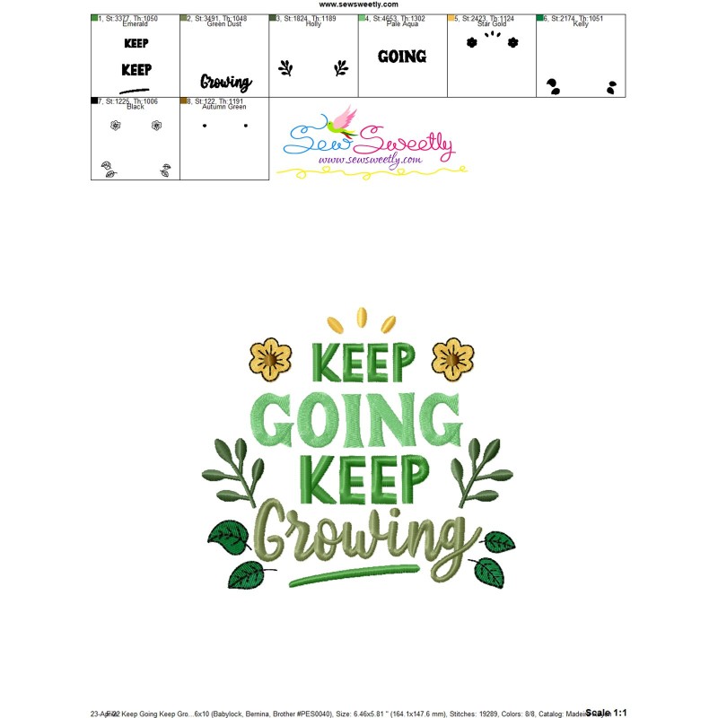 Keep Going Keep Growing Gardening Embroidery Design Pattern-1