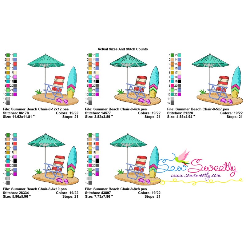 Summer Beach Chair With Umbrella-8 Exclusive Machine Embroidery Design Pattern For Summer Embroidery Projects.