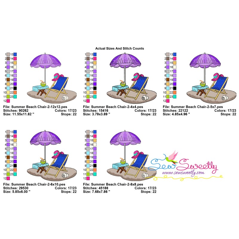 Summer Beach Chair With Umbrella-8 Embroidery Design Pattern-1