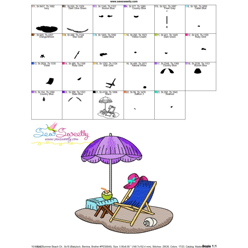 Summer Beach Chair With Umbrella-2 Embroidery Design Pattern-1