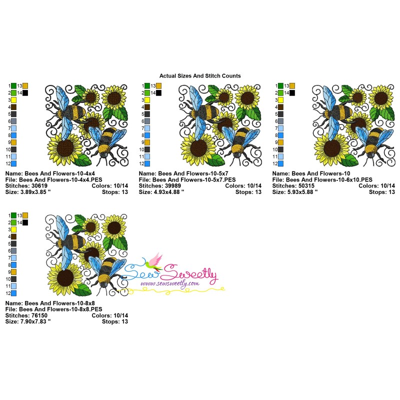 Bees And Sunflowers Quilt Block-10 Embroidery Design Pattern-3