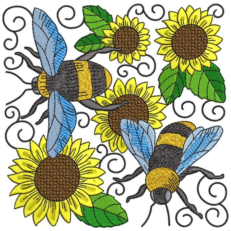 Bees And Sunflowers Quilt Block-10 Embroidery Design Pattern-1