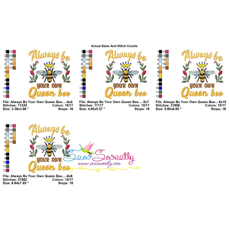 Always Be Your Own Queen Bee Lettering Machine Embroidery Design Pattern.