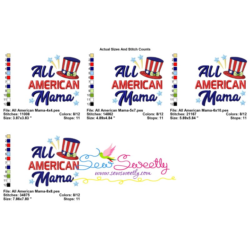 All American Mama Patriotic Embroidery Design Pattern