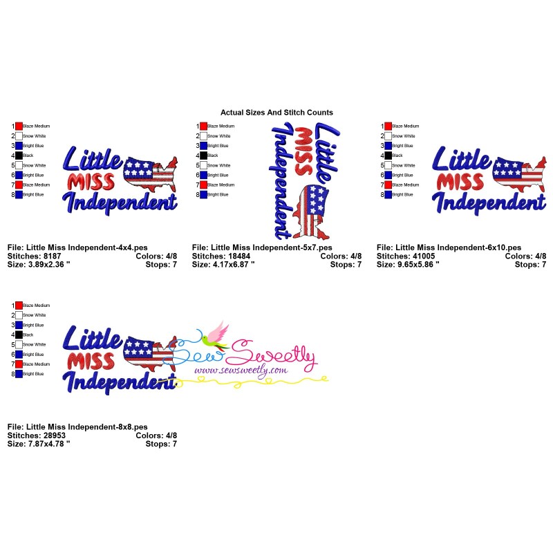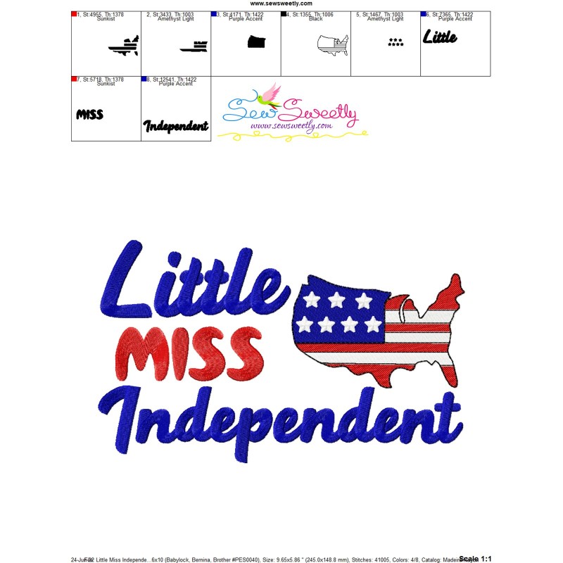 Little Miss Independent Patriotic Embroidery Design Pattern-1