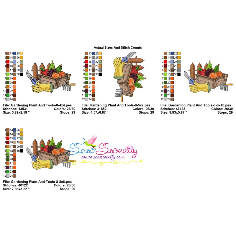 Gardening Plant And Tools-8 Exclusive Embroidery Design Pattern For Garden Machine Embroidery Projects.