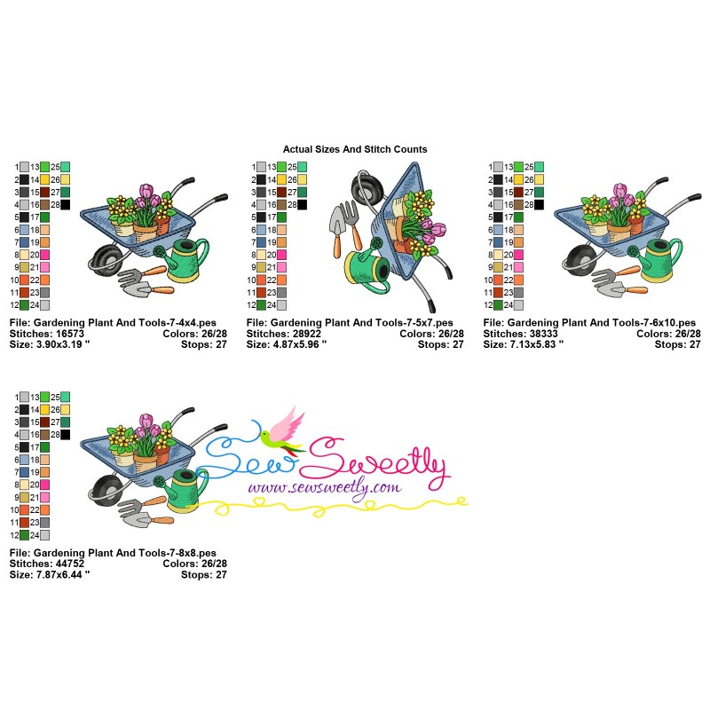 Gardening Plant And Tools-7 Exclusive Embroidery Design Pattern For Garden Machine Embroidery Projects.
