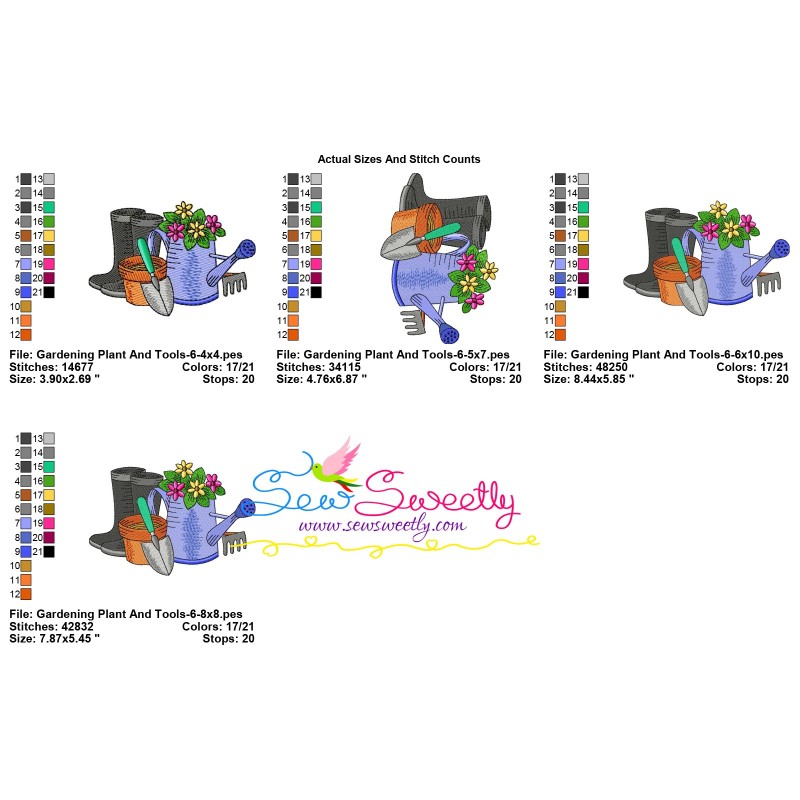 Gardening Plant And Tools-6 Exclusive Embroidery Design Pattern For Garden Machine Embroidery Projects.