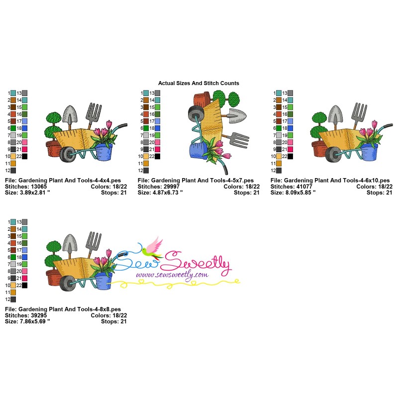 Gardening Plant And Tools-4 Exclusive Embroidery Design Pattern For Garden Machine Embroidery Projects.