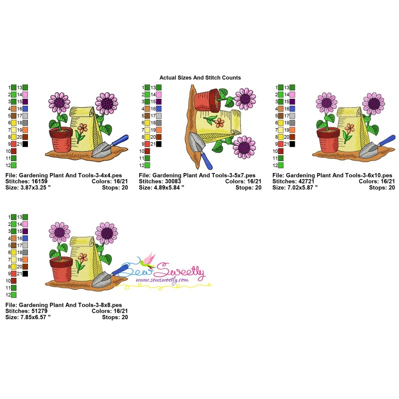 Gardening Plant And Tools-3 Exclusive Machine Embroidery Design Pattern For Garden Machine Embroidery Projects.