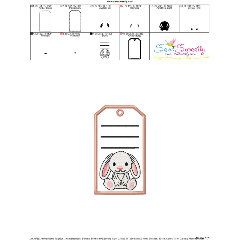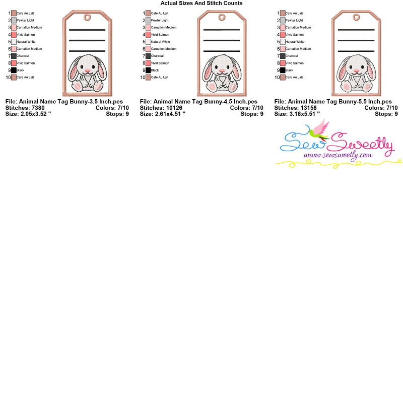 Animal Name Tag Bunny ITH Embroidery Design Pattern With Free Font