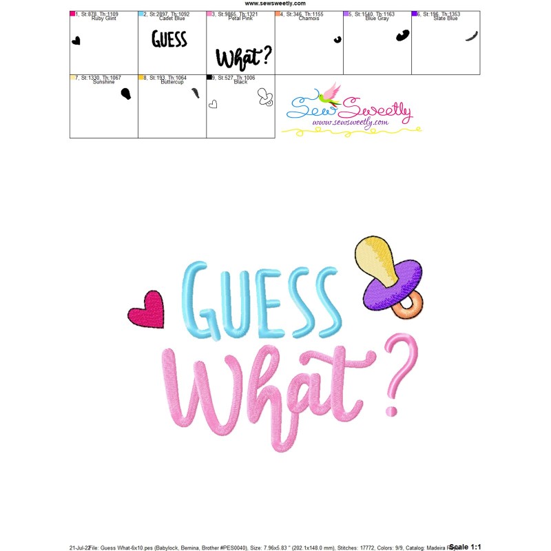 Guess What Baby Quote Exclusive Embroidery Design Pattern For Baby Machine Embroidery Projects.