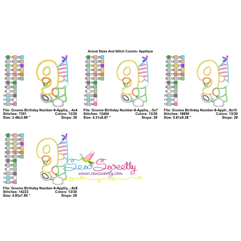 Gnome Birthday Number-9 Exclusive Applique Embroidery Design Pattern For Birthday Machine Embroidery Projects.