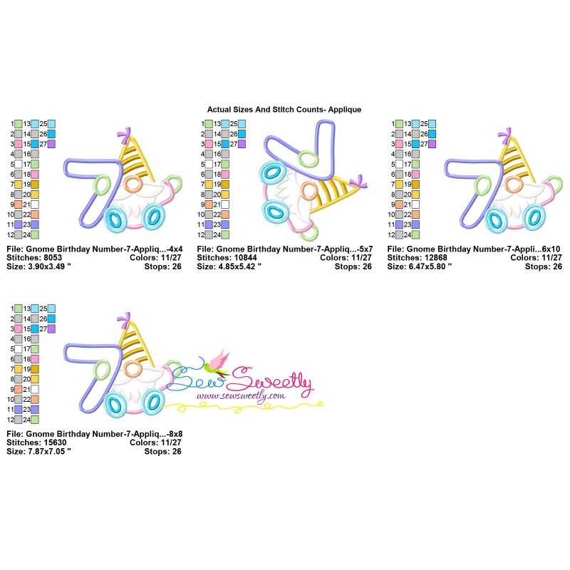 Gnome Birthday Number-7 Applique Design Pattern-3
