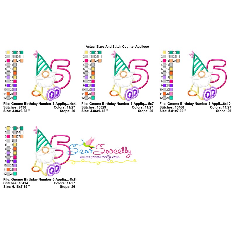 Gnome Birthday Number-5 Exclusive Applique Embroidery Design Pattern For Birthday Machine Embroidery Projects.