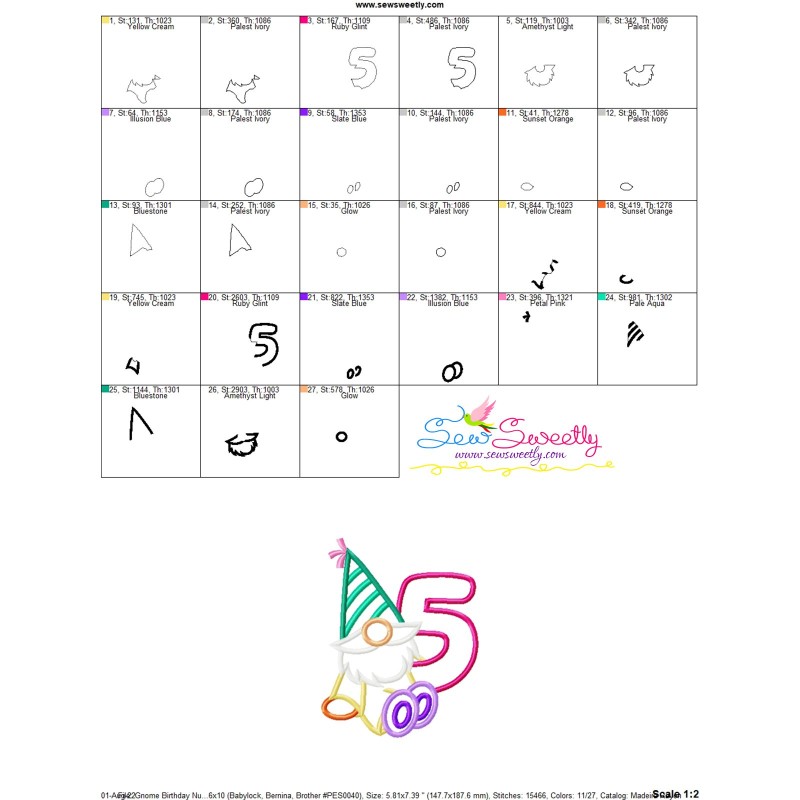 Gnome Birthday Number-5 Applique Design Pattern-3