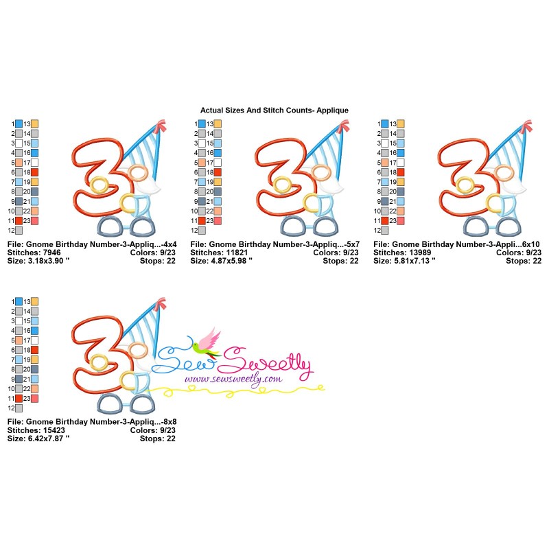 Gnome Birthday Number-3 Applique Design Pattern-1