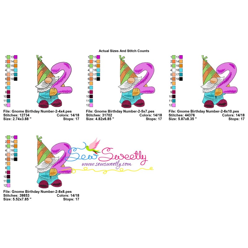 Gnome Birthday Number-2 Exclusive Machine Embroidery Design Pattern For Birthday Machine Embroidery Projects.
