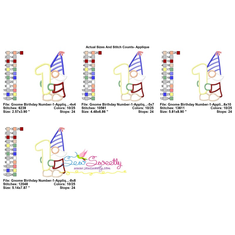 Gnome Birthday Number-1 Applique Design Pattern-1