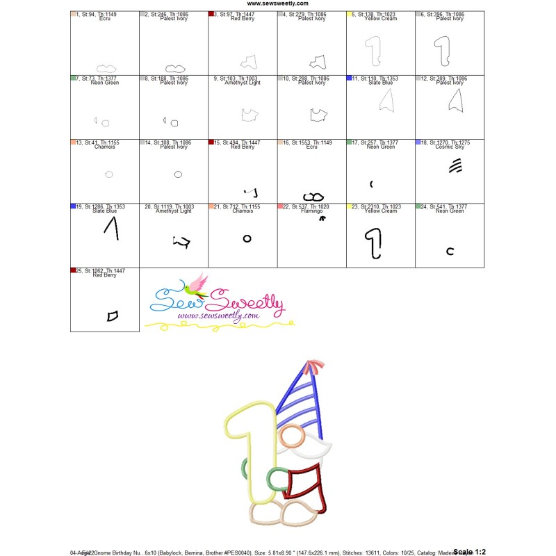 Gnome Birthday Number-1 Applique Design Pattern-3
