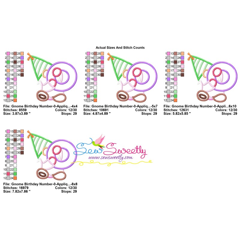 Gnome Birthday Number-0 Exclusive Applique Embroidery Design Pattern For Birthday Machine Embroidery Projects.