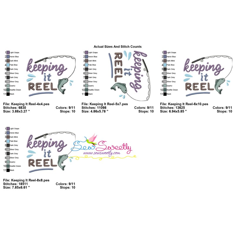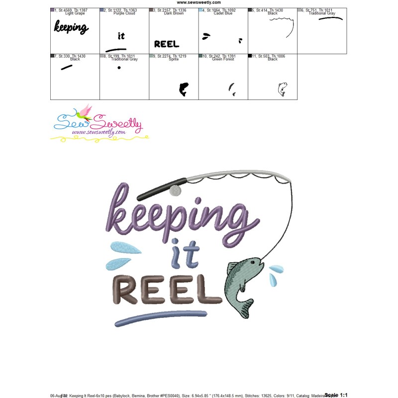 Keeping It Reel Lettering Exclusive Machine Embroidery Design Pattern For Fishing Embroidery Projects.