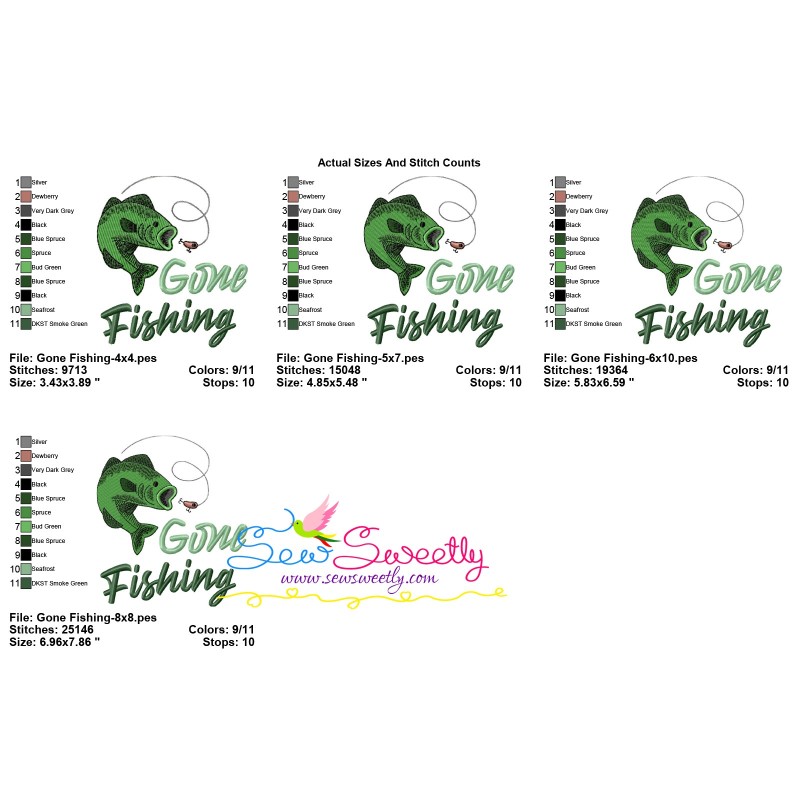 Gone Fishing Lettering Exclusive Machine Embroidery Design Pattern For Fishing Embroidery Projects.