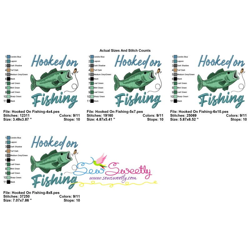Hooked On Fishing Lettering Exclusive Machine Embroidery Design Pattern For Fishing Embroidery Projects.