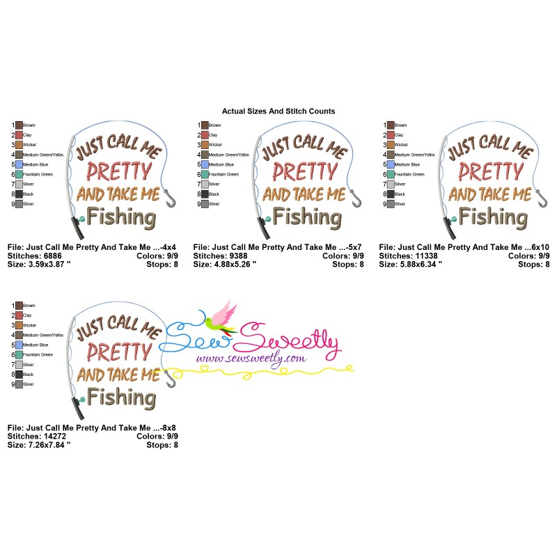 Just Call Me Pretty And Take Me Fishing Lettering Embroidery Design Pattern-2