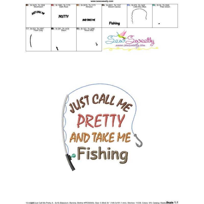 Just Call Me Pretty And Take Me Fishing Lettering Embroidery Design Pattern-1