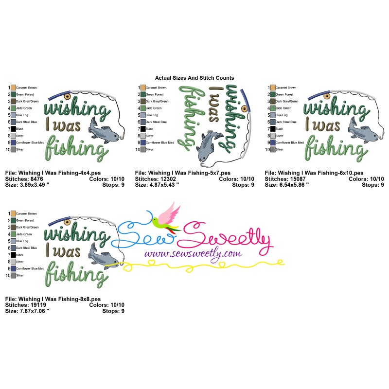 Wishing I Was Fishing Lettering Exclusive Machine Embroidery Design Pattern For Fishing Embroidery Projects.