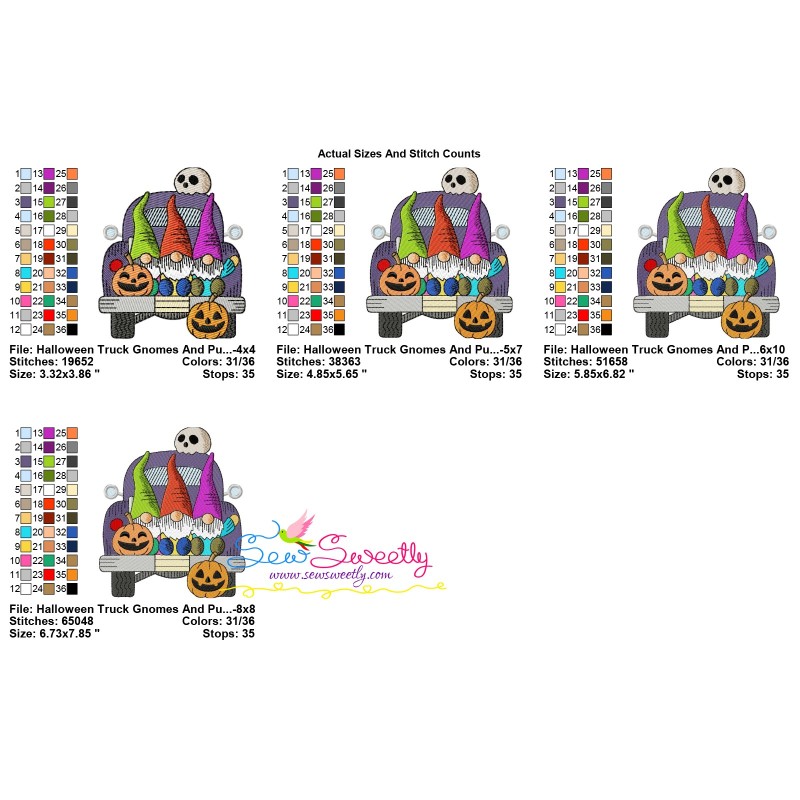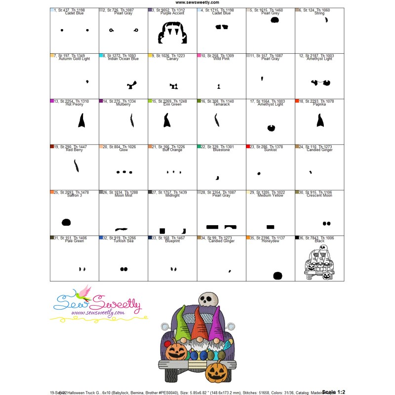 Halloween Truck Gnomes And Pumpkins Exclusive Machine Embroidery Design Pattern For Halloween.