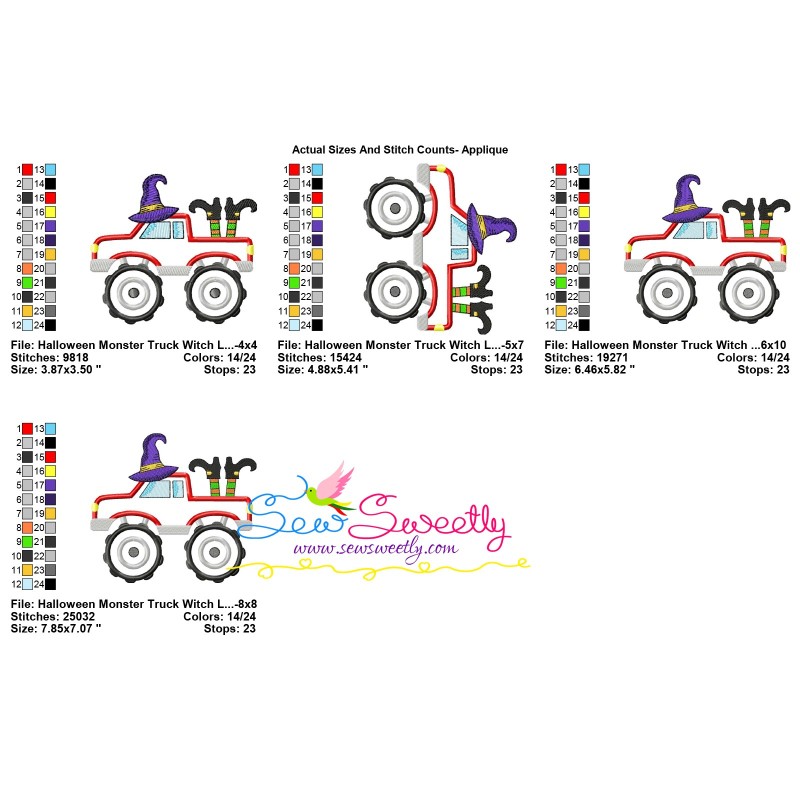 Halloween Monster Truck Witch Legs And Hat Applique Design Pattern-1